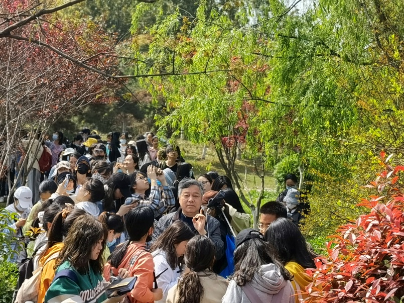 《植物学》是我校第一门省级精品课程,凝聚了课程团队不懈的努力。本次现场教学持续了一整个上午,同学们兴致盎然,始终围绕在项老师周边,时而做笔记,时而拍照。本次课程同步也使用了学习通的课堂直播,让大家课后还可以回放记录。项老师以学生为中心,不断探索新的教学形式,将相对艰难晦涩的理论知识融入公园的移步换影之中,取得了圆满的教学结果,鼓舞了大家对植物学的学习热情和兴趣。