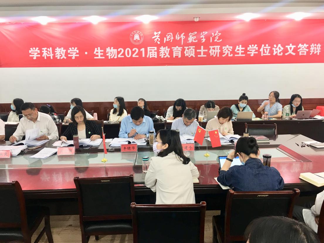 2021年5月26日上午,我院学科教学(生物)2021届教育硕士论文答辩在生物楼214举行。本次答辩由肖云丽院长担任答辩委员会主席,邀请了团风中学正高级教师丰晓华为答辩委员,各2019级教育硕士导师列席,2020级研究生全程观摩。