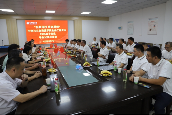 秋意渐浓,桂花飘香。10月7日,黄冈师范学院生物与农业资源学院迎来1992级食品工程专业的19位校友。在这个毕业30周年的特殊时刻,他们从四面八方汇聚于此,共同参与这场跨越30年的时光之旅。学校校友合作办副主任许春妮,学院党委书记闵艳林、院长肖云丽等班子成员及教师代表方建平、钟玉林、项俊、詹火元、方元平、郑永良等参加校友回访活动。