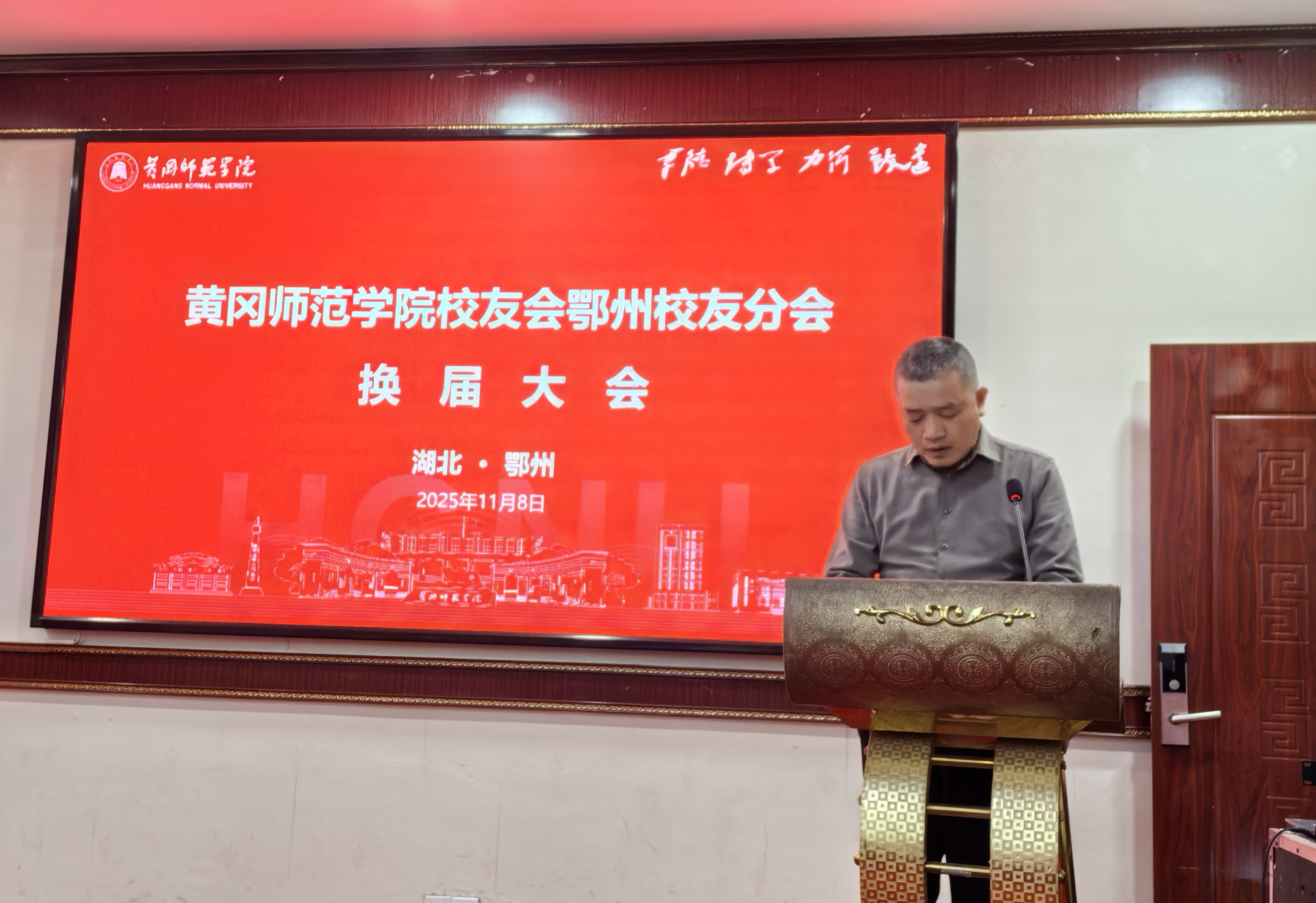 11月8日,黄冈师范学院鄂州校友分会换届大会在鄂州市东香国际大酒店成功举行。学校领导、校友总会代表与鄂州各届校友齐聚一堂,共叙情谊,共同见证鄂州校友分会新一届理事会的诞生。校党委常委、副校长胡志华出席会议并讲话。会议由我校2001级音乐专业校友、鄂州市融媒体中心主持人方琳主持。