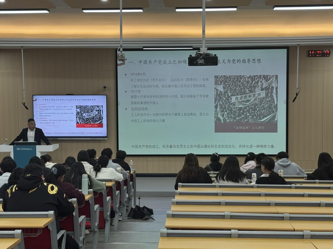 10月30日下午14:00,商学院学生第四党支部书记罗舒成在博学楼A01主讲《追寻思想之光,照亮前行之路》,他以“党的指导思想百年演进”为主线,梳理马克思列宁主义至习近平新时代中国特色社会主义思想的核心要义,结合新时代成就案例阐释理论价值,与学员互动提问,深化“思想是行动的先导”认知。