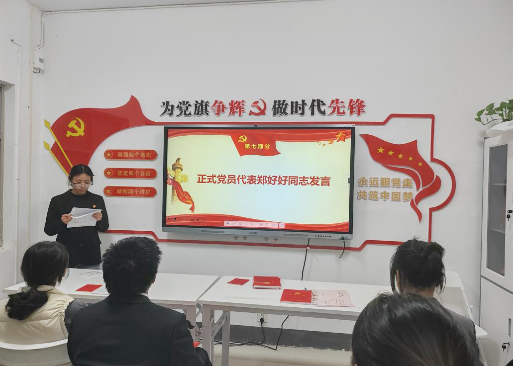 第七项,由正式党员代表郑好好同志发言。她表示,今天大家站在党旗下进行这样一场庄严的仪式,宣示了自己对党的诺言,开启了自己政治生命新的篇章。今后,希望大家更要用实际行动践行诺言,为党和人民的事业奋斗终身。