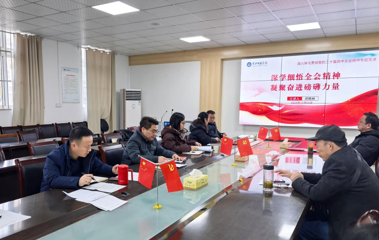闵艳林讲授学习贯彻党的二十届四中全会精神专题党课。他强调,党的二十届四中全会是推进中国式现代化关键时期召开的重要会议,审议通过的“十五五”规划建议为国家发展指明了前进方向。他要求,全院上下要深刻把握全会的重大意义,将全会精神转化为推动学院发展的实际行动;全面领会“十五五”规划的核心要义,认真做好学院“十五五”规划编制工作;聚焦学科建设、人才培养和服务师生等核心任务,以实干担当谱写高质量发展新篇章。